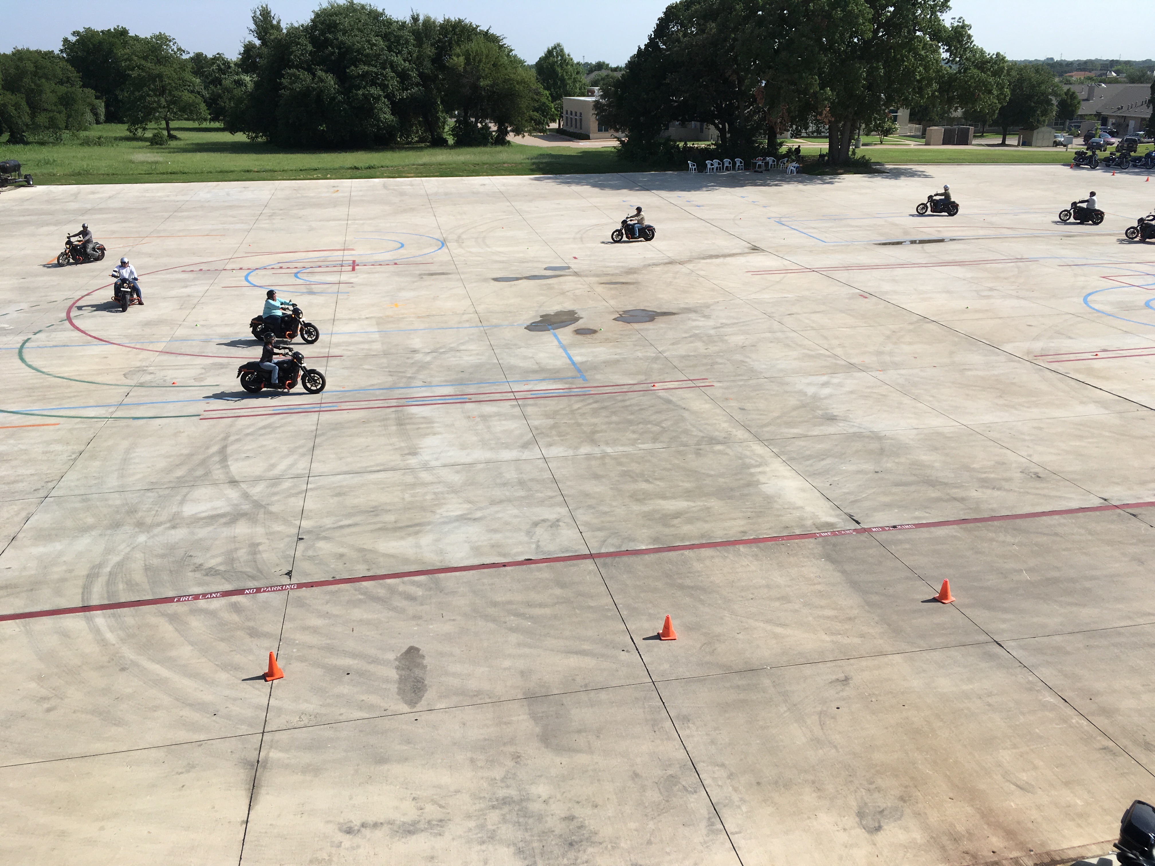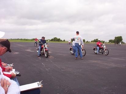 The new dealership, Javelina H-D, added a motorcycle training range at the rear of the dealership shortly after opening in 2003. I watched parts of some of these classes and decided to become a RiderCoach, which is the official title of an instructor. The training requirements were rigorous, requiring monitoring several classes, then completion two weeks of classroom and range training, and passing both written and motorcycle skills riding tests. Trevor Bird at Javelina H-D agreed to sponsor me, and I completed the training in 2003 which licensed me as an MSF (Motorcycle Safety Foundation) RidersCoach and certified to work in Texas. An additional week of training was required to be certified to teach at H-D dealerships.